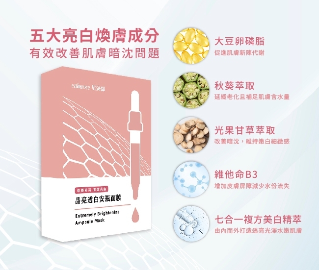 【ENHANCE 依涵絲】晶亮透白安瓶面膜6入